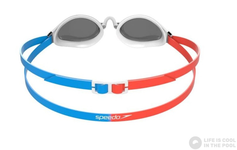 Очила за плуване с двулентова каишка. Този вид каишка представлява един по-дълъг ластик, който преминава два пъти през очилата. Предимството е, че има по-добър захват и може да бъде наместена лесно, като едната лента преминава през долната част на главата, а другата - през горната. Тези каишки могат да бъдат сменени лесно, когато се скъсат.